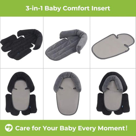 • 3 IN 1 Reversible: The seat liner baby car seat insert has a clever nested design, sandwich mesh fabric liner is soft and breathable and perfect for hot days. Reversible babybody support is ultra soft to the touch, absorbent, hypoallergenic, and sturdy