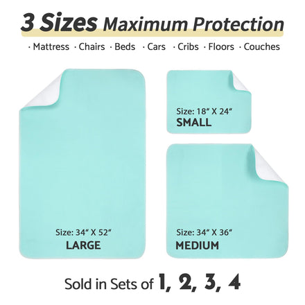 • Versatile & Multi-Purpose – Perfect for preventing accidents and stains during menstruation, pregnancy, postpartum recovery, bed-wetting training, incontinence, and for the elderly. These reusable bed pads washable waterproof protect beds, sofas, and car seats from leaks and spills.