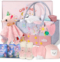 Coralogo Baby Shower Gift Basket - Baby Gift Set, Pregnancy Gift for New Parents, Gender Reveal Gifts, New Born Essential with Security Blanket Soft Hat Bib SocksMittens, Boy & Girl