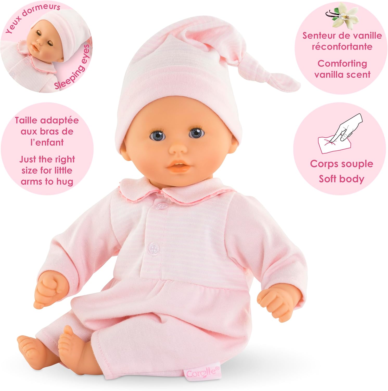 Corolle Bébé Calin Charming Pastel Baby Doll - 12" Soft Body Doll with Pink Outfit, Sleeping Eyes Open and Close, Vanilla-Scented, for Kids Ages 18 Months and up