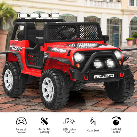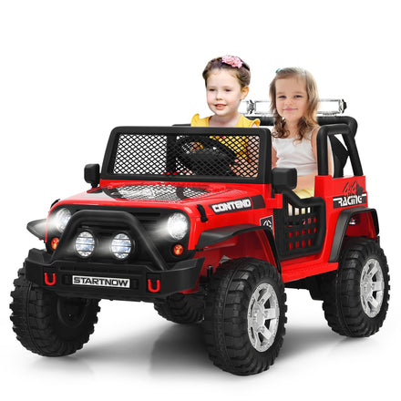 Costzon 2-Seater Ride on Truck, 12V Battery Powered Electric Vehicle w/Remote Control, 2 Speeds, Spring Suspension, LED Light, Horn, Music/ MP3, 2 Doors Open, Ride on Car for Kids (Red)