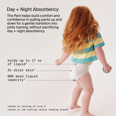 • THE BABY PANT: Easy changes and comfortable movement for active babies. Supporting your baby's independence, these potty training pants change vertically or horizontally with a resealable waistband.