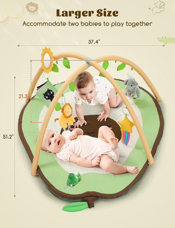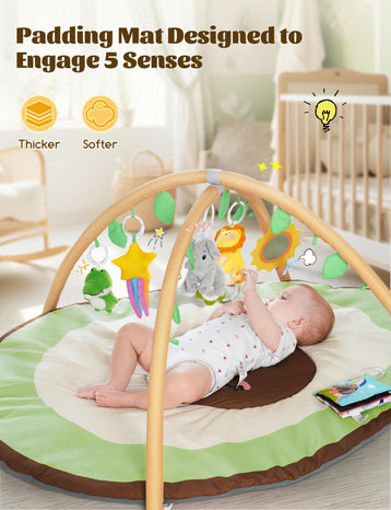 • All-Encompassing Early Development:The activity play gym comes with 6 detachable toy accessories, a sun cognition mirror for fostering self-awareness, lion and crocodile rattles for auditory development, an elephant teether for bite training, a brightly colored meteor, and a cloth book ringing paper for visual and tactile stimulation, promote sensory development while the baby plays