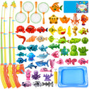 CozyBomB™ Magnetic Fishing Toys Game Set for Kids | Water Table Bathtub Kiddie Pool Party & Pole Rod Net, Plastic Floating Fish Toddler Color Ocean Sea Animals Birthday Age 3 4 5 6 Year