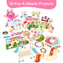 • 20 MESS-FREE CRAFTS, READY TO GO: This all-in-one kit includes 20 pre-prepped princess and unicorn crafts for kids ages 3-10, complete with all necessary supplies. Perfect for easy setup and cleanup—no extra shopping required.