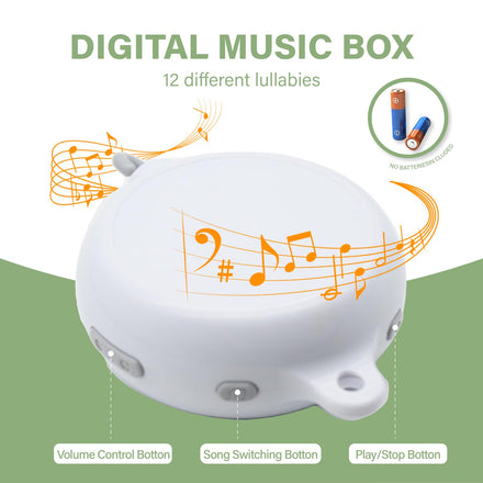• 【12 Gentle Lullabies】The music box features a convenient on/off switch, an adjustable volume control button, and a button that allows easy switching between tracks. As the music plays, crib toys hanging gently rotate, help lull babies to sleep peacefully.