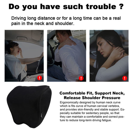 • NECK PAIN RELIEF: Comfort your neck and shoulder while driving long time or long distance which can support your cervical spine in different directions, car seat neck pillow with 100% pure memory foam provides a great support for your cervical spine and head, help you maintain the correct posture in driving, and make your driving safer and reduce fatigue