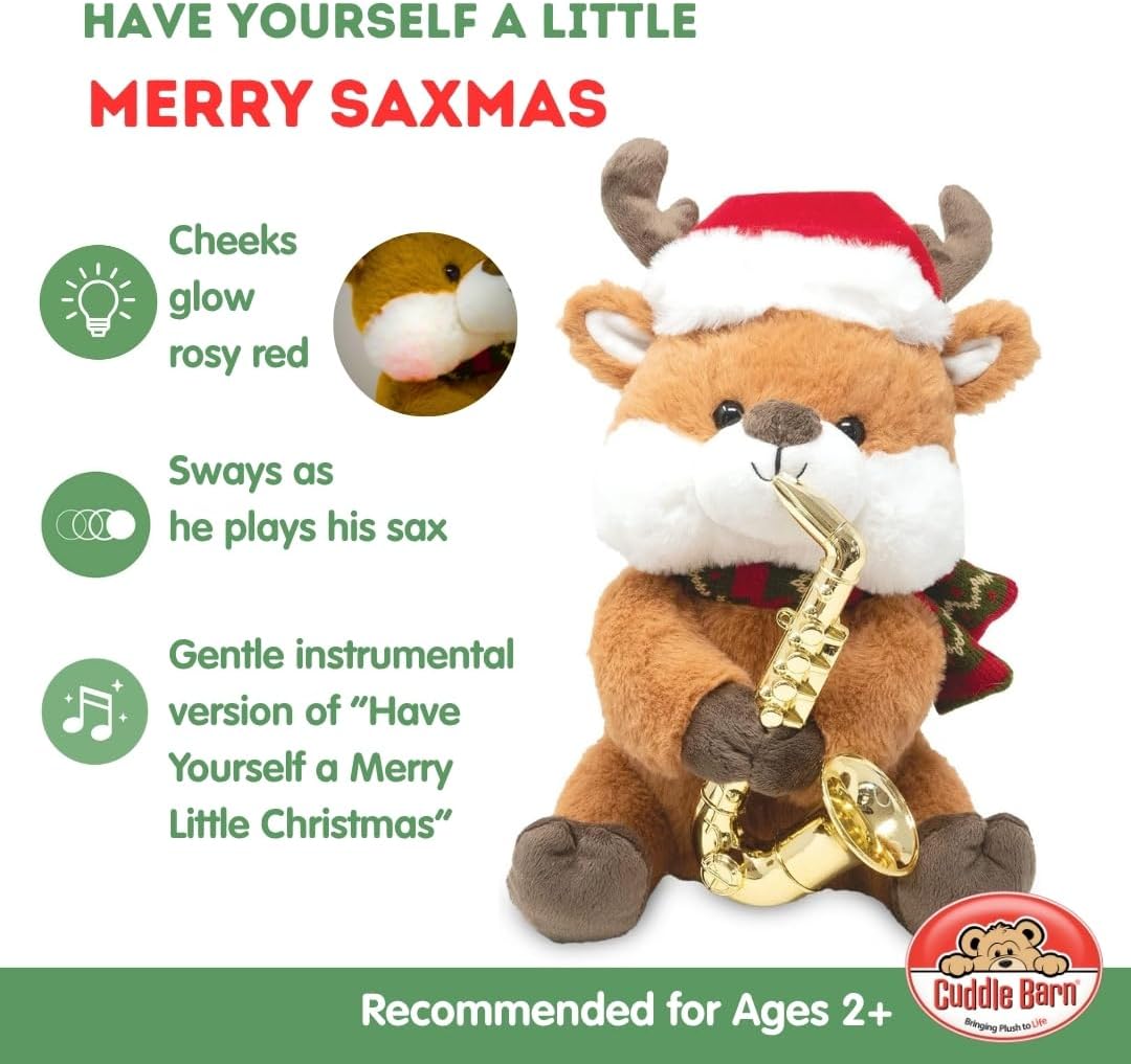 Cuddle Barn - Merry Saxmas Sterling | Animated Christmas Reindeer Stuffed Animal Plush Toy, Sways, Lights Up, and Plays Saxophone to Have Yourself a Merry Little Christmas, 12 inches