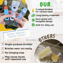 • DURABLE, HIGH-QUALITY MATERIALS: Made from ABS, PP, and heat-resistant silicone, this travel bottle brush resists deformation and withstands hot water. The cup lid brush ensures deep cleaning without scratching, making it safe for glass, plastic, and stainless steel bottles while staying odor-free after multiple uses. It’s also great for kitchen bottle brush tasks and works as a small cleaning brush for smaller items. This 3 in 1 cleaning brush also functions as a versatile lid cleaner and cup lid cleaner for everyday use.