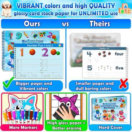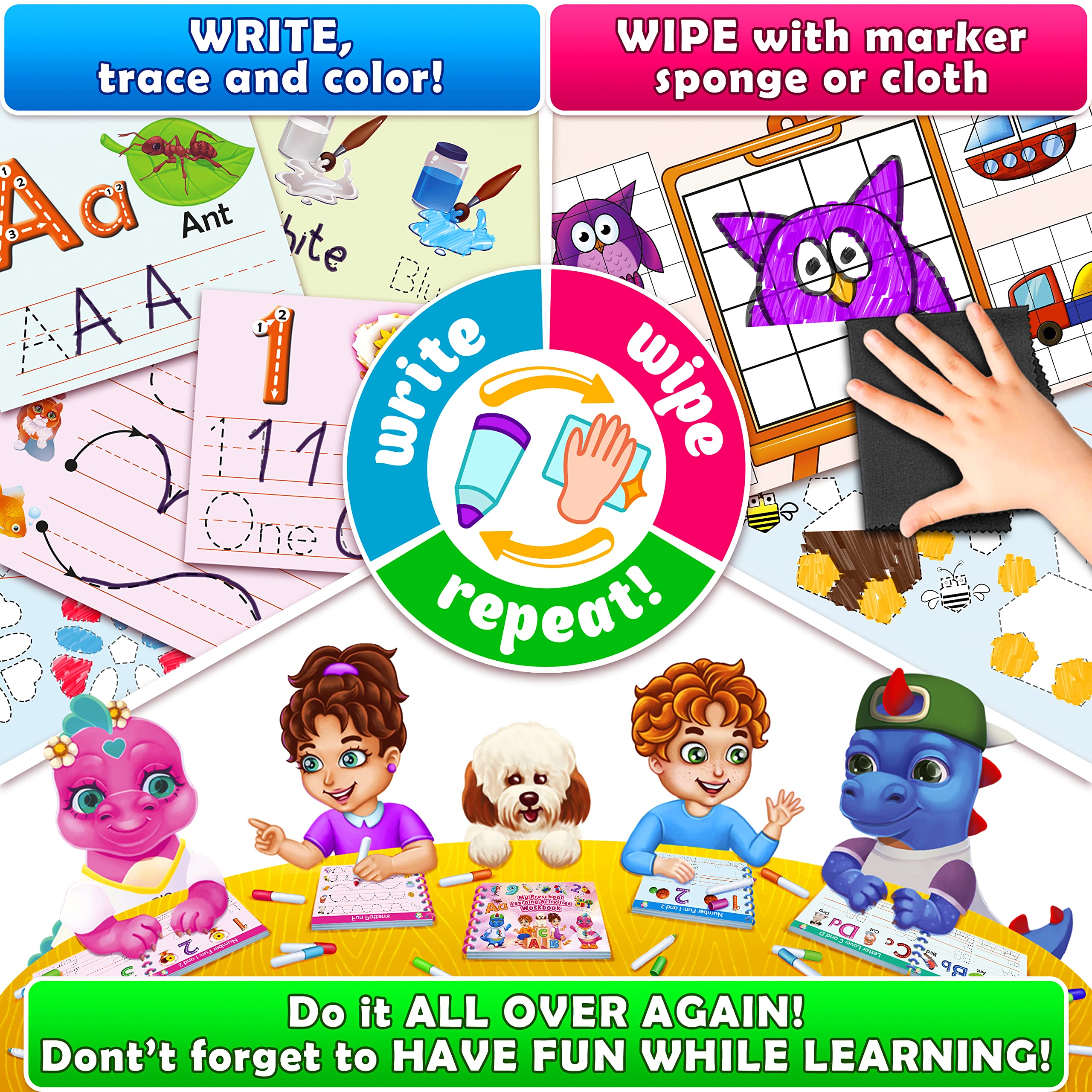 • 【Premium & Practical Preschool Classroom Must Haves】- Made of safe, waterproof & durable hardcover; our hand writing practice books for kids come with easy to erase, glossy & reusable pages to ensure durability & longevity, 9 colorful markers, microfiber suede cloth & exquisite packaging