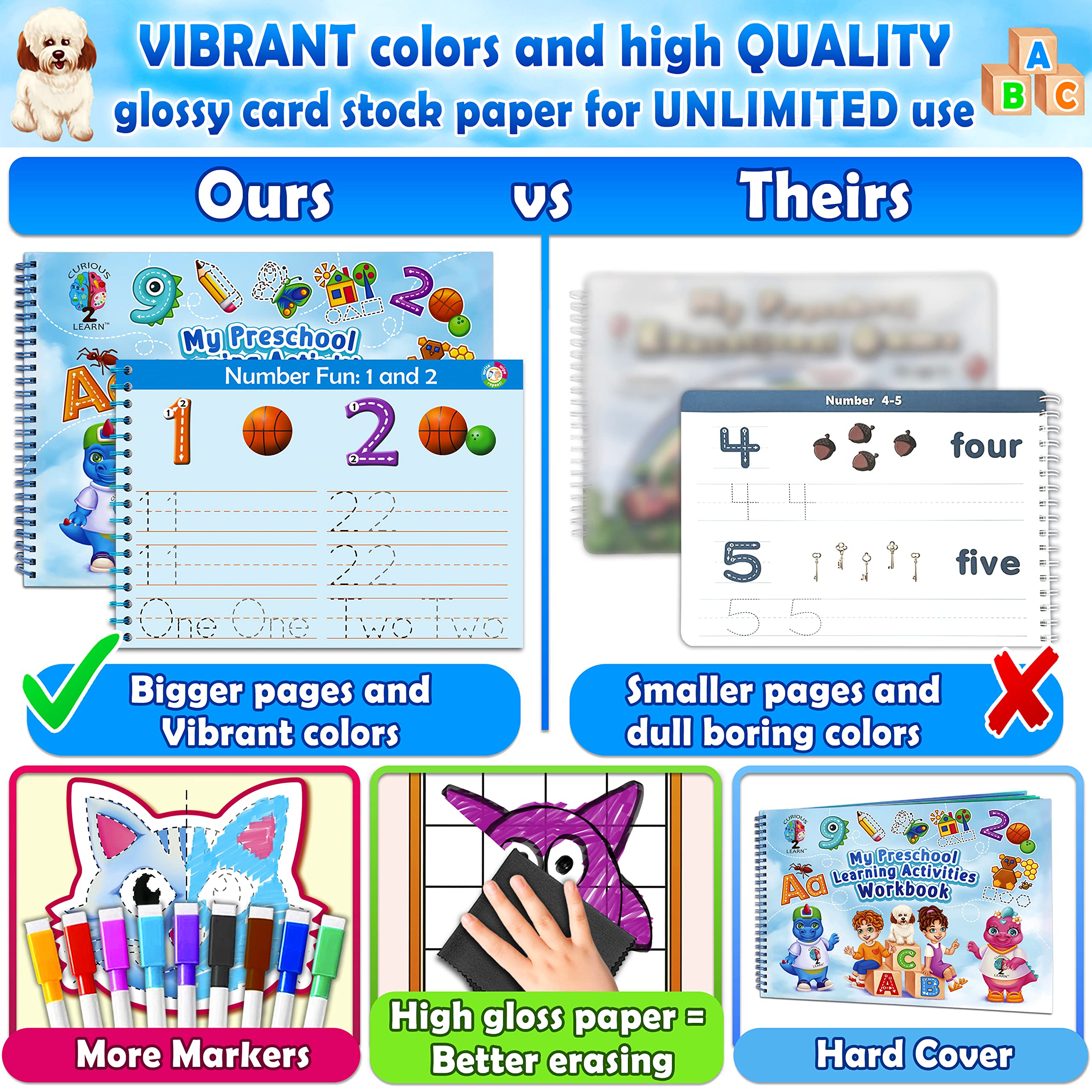 • 【Toddler Preschool Learning Activities Workbook】- With 11 fun & stimulating activities, our toddler books encourage early cognitive development & cover all the essential skills your child needs; beyond ABC Learning for Toddlers Curious2Learn activity books for kids ages 3-5 help your children learn alphabets, numbers, colors, shapes, tracing, coloring & more in an engaging way