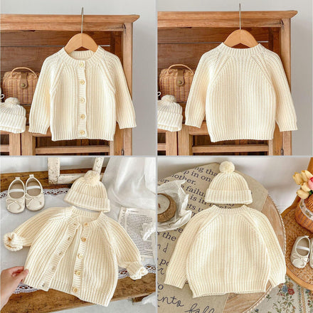 Curipeer Baby Girls Knitted Cardigan Sweater Infant Neutral Solid Outfits Sweaters for Autumn and Spring 3T