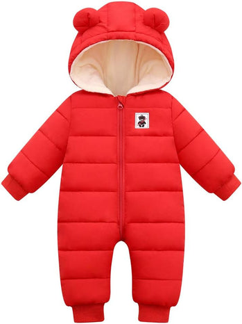 • High quality material: Our infant and toddler snowsuit is comfortable to wear, filled with high quality polyester, making your baby feel warm and cozy in cold weather.The baby boys and girls snow suits is made of high-quality waterproof & windproo fabric,the baby warm jumpsuit can effectively prevent your baby from getting wet in sudden rainy or snowy weather.