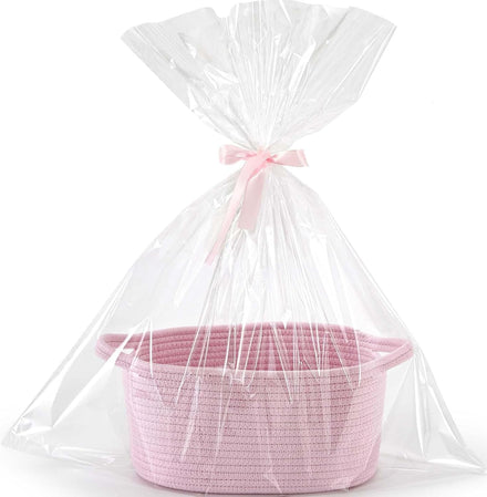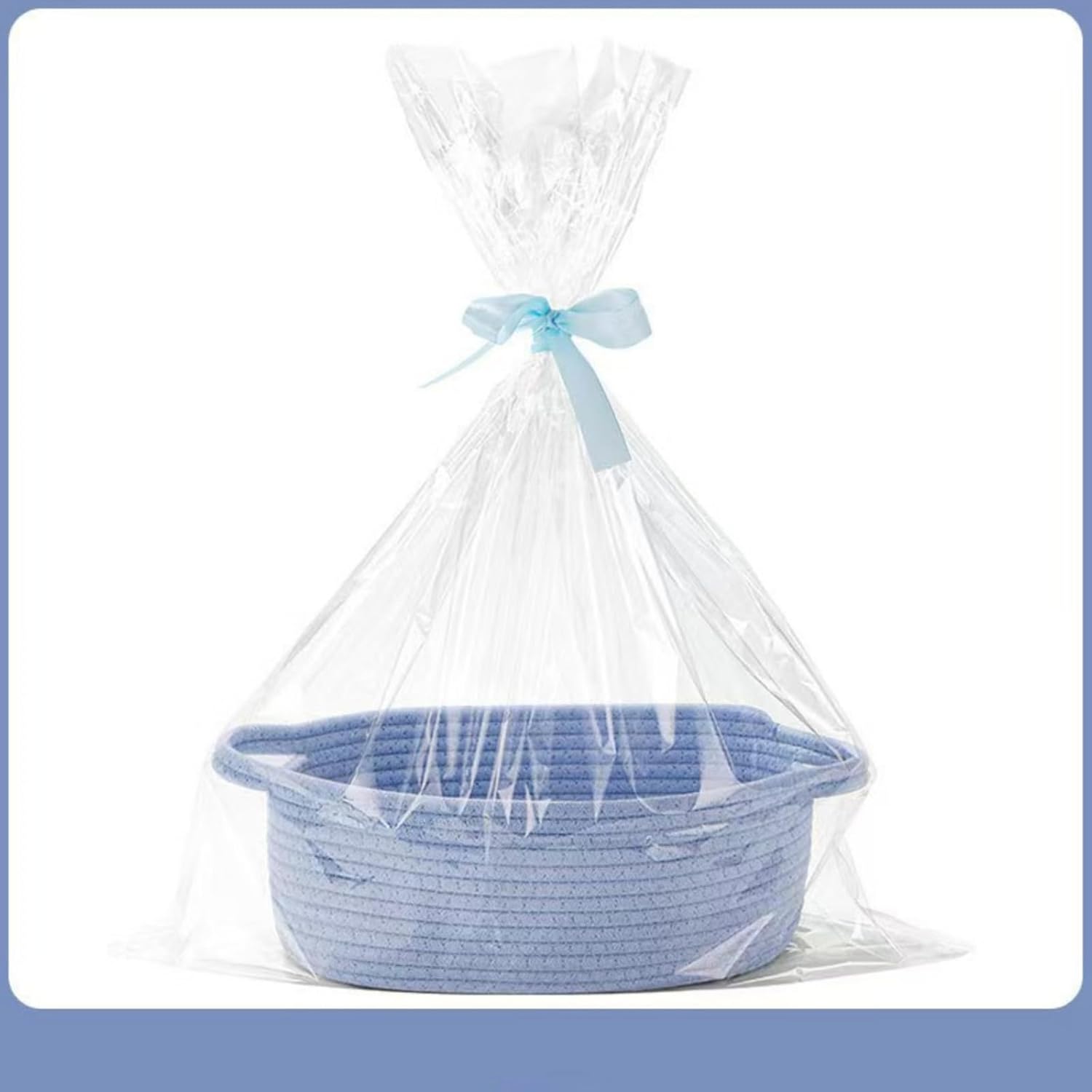 Cute Woven Storage Basket with Handle, Baskets for Gifts Empty, Gift Baskets for Birthday Shower Raffle Burr Fundraiser, Decorative Organizer Box for Toy Pet(Blue)