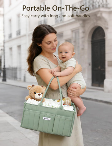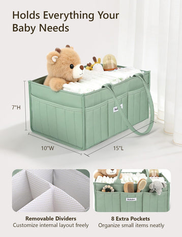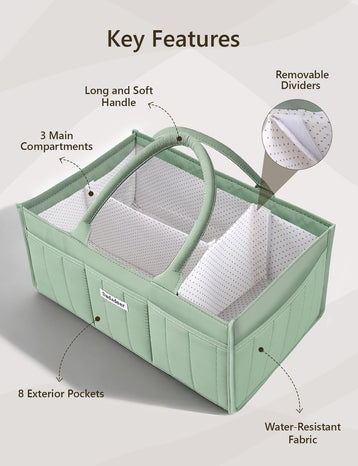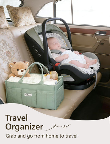 DADADEER Baby Diaper Caddy Organizer, Portable Nursery Storage Basket for Newborn Essentials, Changing Table & Car Caddy Organizer, Gift for Baby Shower, Registry Must-Have for Boy Girl, Green