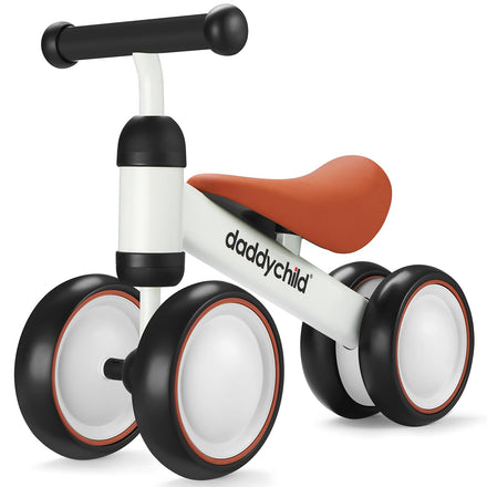DADDYCHILD Baby Balance Bike for 12-24 Month Toddler, Toys for 1 Year Old Kids, No Pedal Infant 4 Wheels Baby Walker, Ride On Toys for Boys & Girls, Best First Birthday Gifts Children (White)