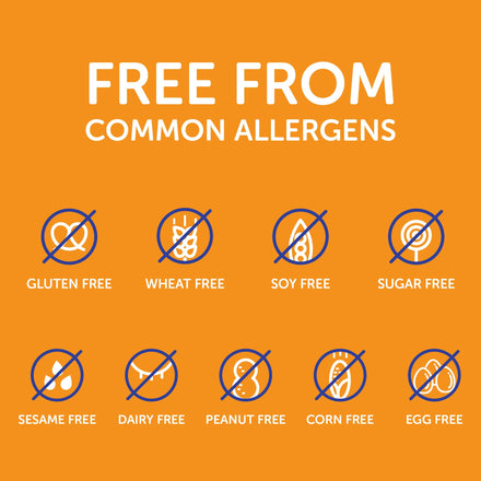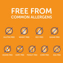 • Free from preservatives, additives, artificial flavors, colors, and common allergens.