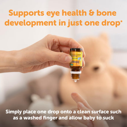 • Recommended daily intake of vitamin D in just one tasteless drop.