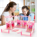 • DIY Princess Dollhouse Set: Our Princess doll house would be a great fun to your child’s dollhouse collection. This doll house includes many accessories such as dolls, cars,table & chairs,fence,playground,trees and furniture accessories.Kids can have lots of fun building this vibrant colored DIY doll house and all the accessories with it.