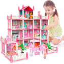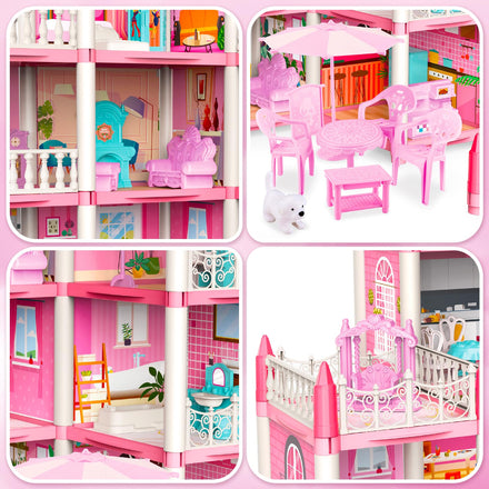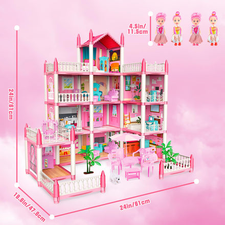 deAO Princess Girl Toys 4-Story 14 Room Dollhouse Playset with 4 Dolls, Furniture & Accessories, Princess Castle Toy for 3-8 Kids