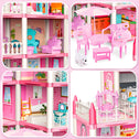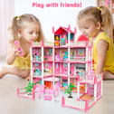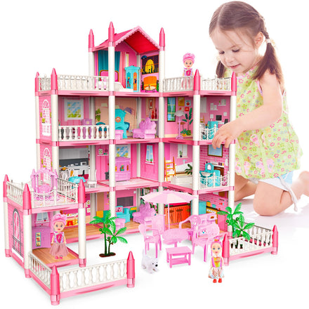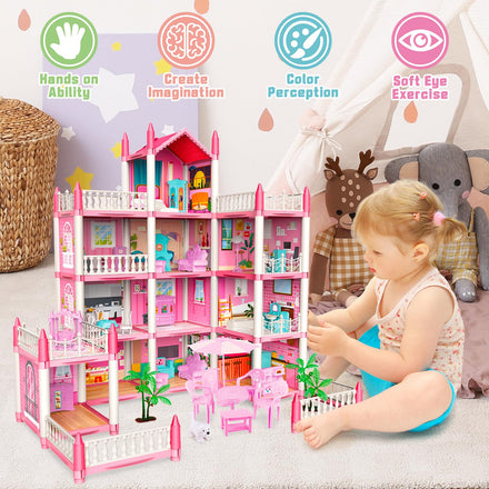 • 4-Story Doll House with 14 Rooms: This dolls house has 4 floors which include many rooms such as a bedroom,living room,balcony,kitchen,yard,bathroom and more. This set includes accessories creating a realistic effect.Children can role play with their friends or family. This adorable princess playhouse will stimulate imaginative pretend play.