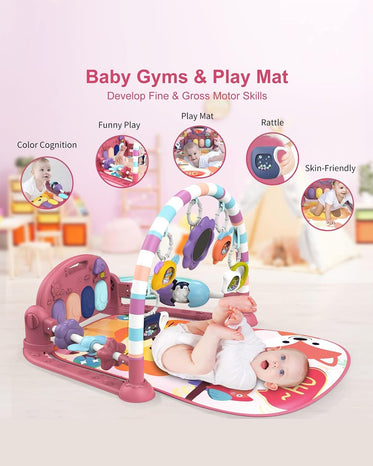 dearlomum Baby Play Mat Baby Gym,Funny Play Piano Tummy Time Baby Activity Gym Mat with 5 Infant Sensory Baby Toys and 2 Baby Soft Rattles, Boy & Girl Gifts for Newborn 0 to 3 6 9 12 Months(Pink)