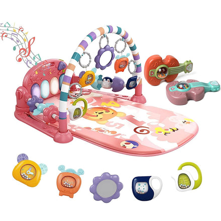 dearlomum Baby Play Mat Baby Gym,Funny Play Piano Tummy Time Baby Activity Mat with 5 Infant Sensory Baby Toys & 2 Guitar Rattles, Boy & Girl Gifts for Newborn Baby 0 to 3 6 9 12 Months(Pink)