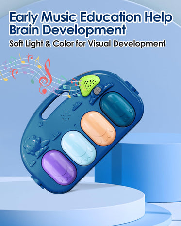 Dearlomum Baby Play Mat & Gym, Fun Piano Tummy Time Activity Mat with 5 Sensory Toys, Music & Lights - Boy & Girl Gifts, 0-12 Months (Blue)