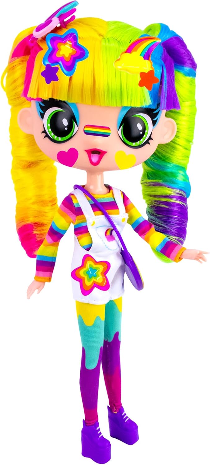• Extra-Long Rainbow Hair – Her fully rooted, soft rainbow pigtails are perfect for twisting, braiding, and styling, letting kids create endless fun looks.