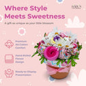 • Stylish Clothing "Flower" Arrangement - Each clothing piece in our personalized baby layette is hand-rolled to resemble flowers, creating a gorgeous bouquet-style arrangement. This presentation adds a unique touch, eliminating the need for extra gift wrapping.