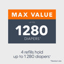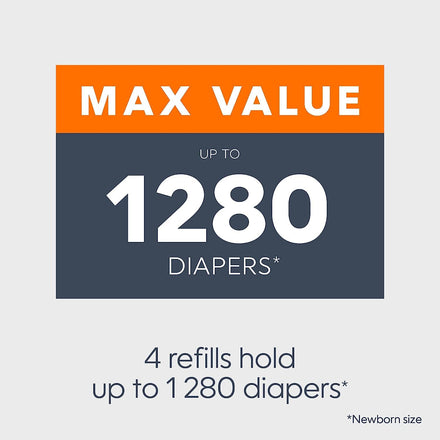 Details: The Diaper Genie Essentials Round Refill 4-pk can hold up to 1280 newborn-sized diapers and is made from durable multi-layer film that features odor-locking barrier technology preventing odors from escaping and keeping your nursery fresh. Compatible with Diaper Genie Complete Pail and Expressions Pail.