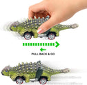 • [6-PACK DINOSAUR CARS] A collection of 6 artfully-crafted roadster dinosaur pull back toy cars make perfect dino toys for 3 year old boys. Our dinosaur toys include T-Rex, Triceratops, Stegosaurus, Ankylosaur, Pterosaur, and Velociraptor.