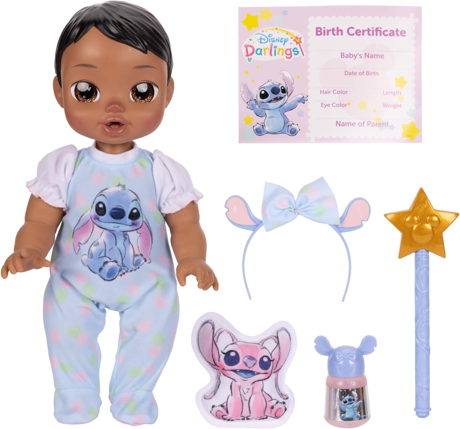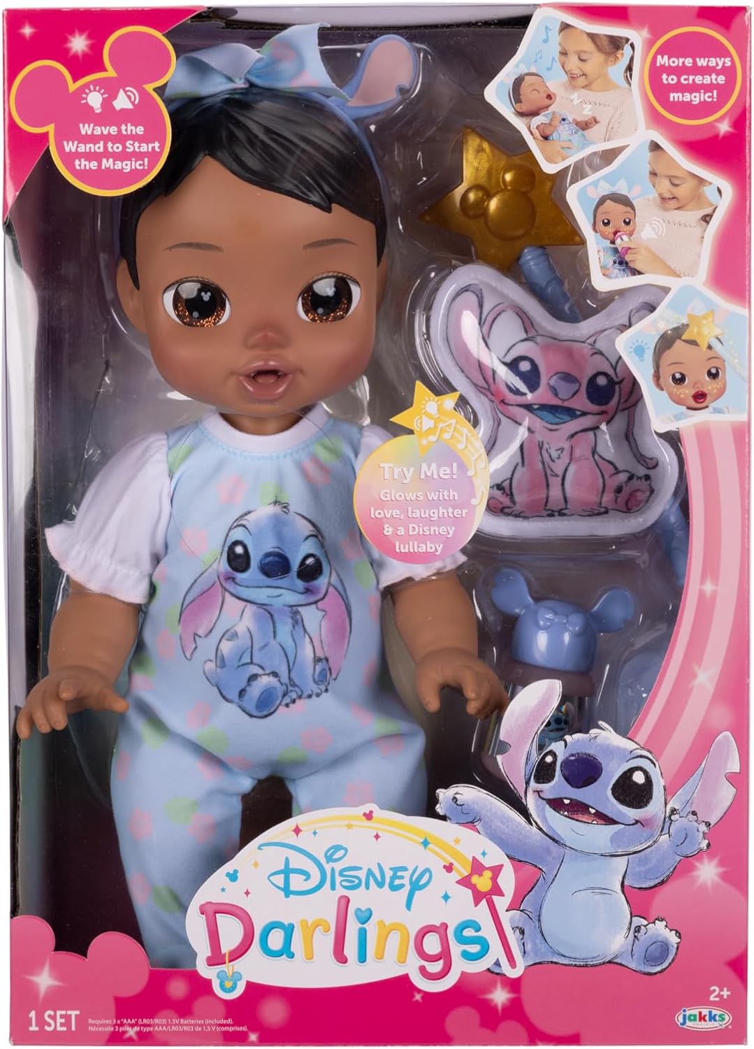 Disney Darlings 13-Inch Interactive Baby Doll – Magical Lights, Sounds, Music & Wand – Stitch-Inspired Nurturing Doll with Accessories – Multiple Skin Tones, Eye Colors – Ages 2 and Up