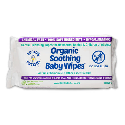 Doctor Butler's Organic Baby Wipes - Hypoallergenic & Unscented Baby Wipes, Safe for Baby Sensitive Skin Care, Made with Chamomile & Essential Oils (1pk – 60 Wipes)