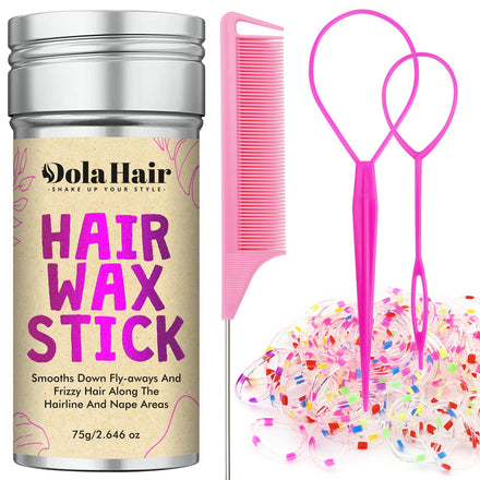 Dolahair Hair Wax Stick & Accessories - Flyaway Control for Kids & Women, 50 Pcs Colorful Elastic Hair Bands, 1 Pcs Slick Back Hair Brush, 2 Hair Loop Styling Tools