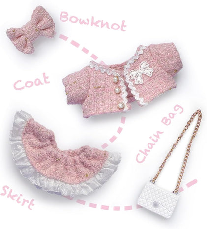 Doll Clothes for 6.69 inches (17 cm) Trending Key Chain Dolls, 4-Piece Feminine Chic Style Doll Outfit & Accessories , Compatible with Labubu