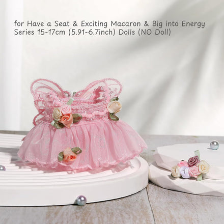 Doll Clothes for Labubu 17cm Have a Seat & Exciting Macaron & Big into Energy Series Dolls, Adorable Chic Dress Set for 17cm Dolls Accessories (Pink Flower Skirt + Hairband)