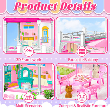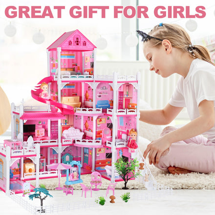 Doll House for Girls,10 Rooms Dollhouse with Dolls Figure, Puppies,Furnitures, Accessories, Kids Playhouse for for 3 4 5 6 7 8 9 10 Year Old