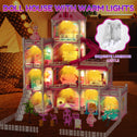 • 【Doll house with Warm Lights】This lovely doll house is equipped with LED light strings. When you turn on these colorful lights at night, it makes the doll house even more beautiful, looks like a gorgeous castle in a fairy tale! It allows kids to immerse themselves in the fairy tale world and enjoy a happy time