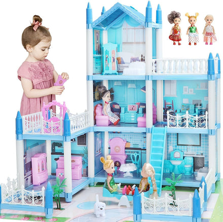 • Fantastic Lighting - The blue dollhouse comes with white lights that illuminate the whole house in the dark and look more fantastic. The doll house will become the perfect party place. Fairy tales will start from here, and little boys and girls will dance happily!