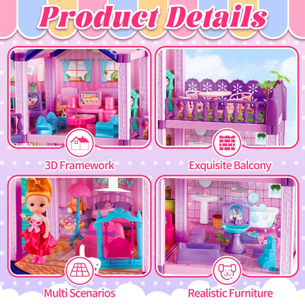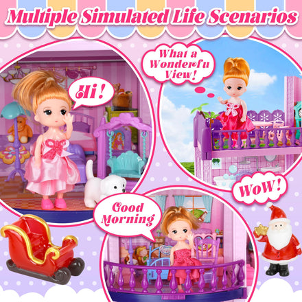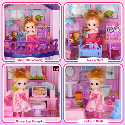 • 【DIY and Fun】Kids can easily assemble the doll house according to the instructions or DIY a unique castle. They can build doll houses with friends or family, which is a great way to exercise hands-on skills and cultivate creativity. They can also play role-play games with their friends to experience different kind of life