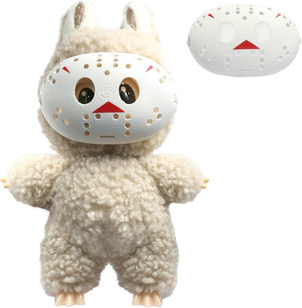 Transform your doll or plush toy into a spooky character with this unique character mask accessory. The striking white mask features distinctive perforated holes across its surface, complemented by bold red accent markings that add a dramatic touch. Perfect for customizing your 17CM or similar collectible dolls, this premium accessory is crafted from durable plastic material. The mask showcases intricate details including eye holes and a textured surface pattern that creates an eye-catching dimensional effect. Its versatile design makes it an excellent addition to any doll collector's customization kit, whether for display or creative play. The mask's secure fit and lightweight construction ensure it can be easily attached and removed without damaging your collectible figure. This specialty accessory brings a thrilling twist to your doll collection, ideal for those who enjoy horror-themed collectibles or unique character modifications.