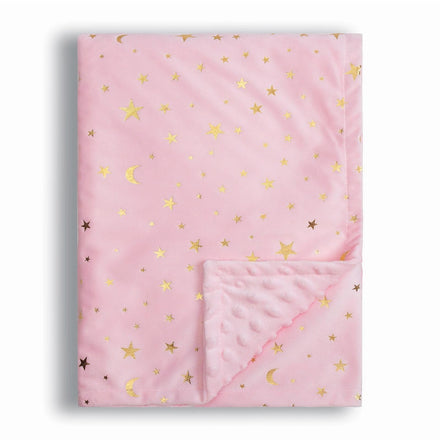 Donsonny Baby Blanket for Boys Girls Soft Minky with Double Layer Dotted Backing, Star and Moon Printed 30 x 40 Inch Receiving Blanket (Pink)