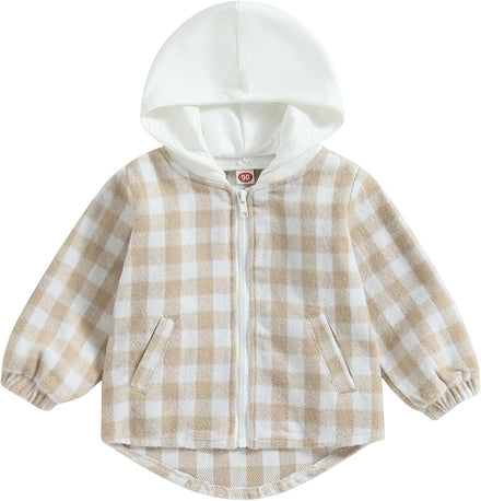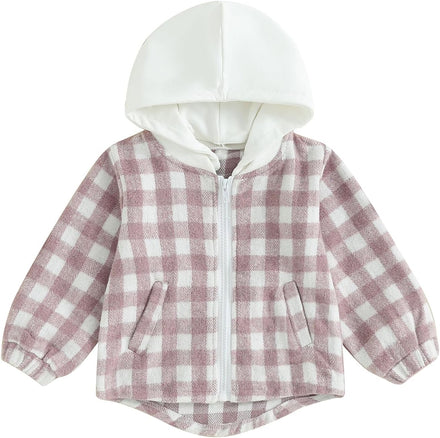 Douhoow Toddler Baby Plaid Jacket Baby Boy GIrl Flannel Hoodies Zip Up Hooded Fall Winter Outerwear Coat