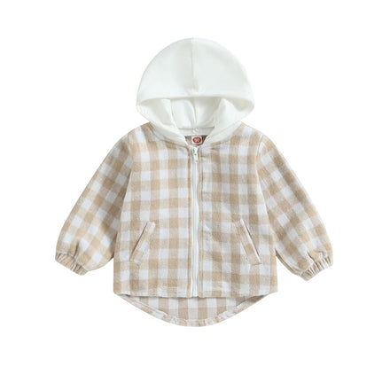 Douhoow Toddler Baby Plaid Jacket Baby Boy GIrl Flannel Hoodies Zip Up Hooded Fall Winter Outerwear Coat (Khaki, 18-24 Months)