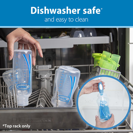 - DISHWASHER SAFE. Safe for use in dishwasher (top rack only), electric and microwave sterilizers or boiling water. BPA Free.