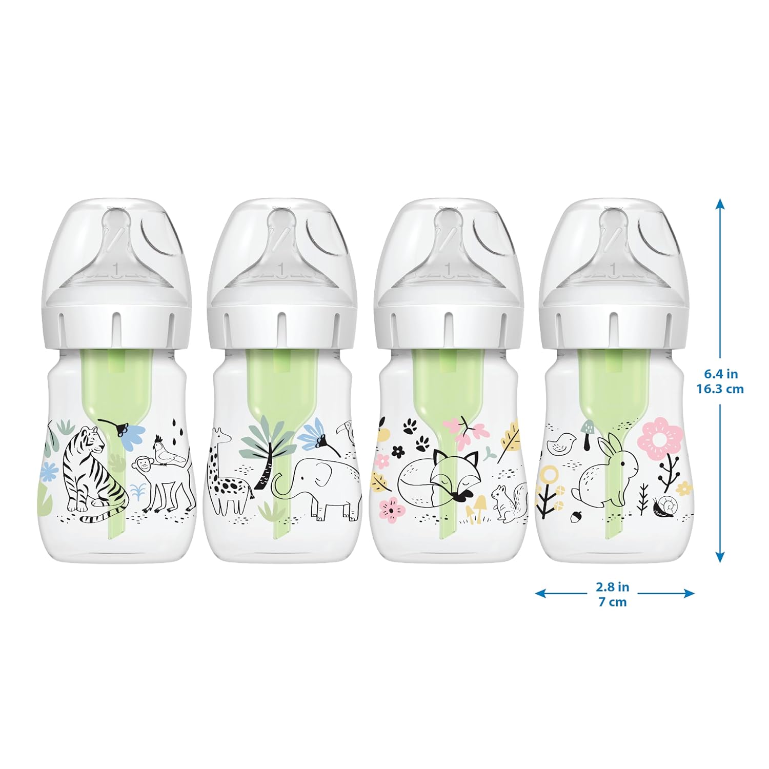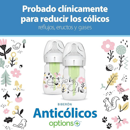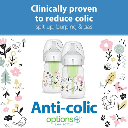 Dr. Brown’s Natural Flow Anti-Colic Options+ Wide-Neck Baby Bottle Designer Edition Bottles, Woodland Decos, 5 oz/150 mL, Level 1 Nipple, 2-Pack, 0m+