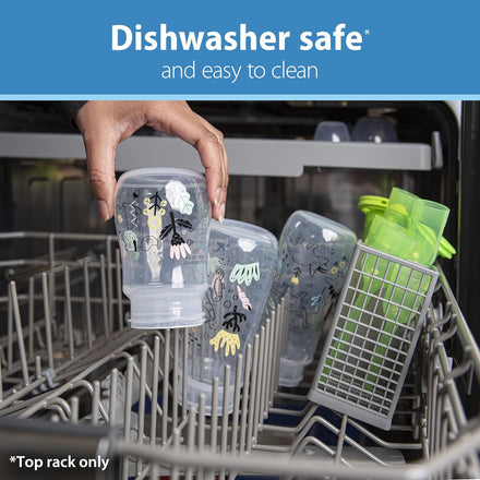 • DISHWASHER SAFE. Safe for use in dishwasher (top rack only), electric and microwave sterilizers or boiling water. BPA Free. 5 oz/150 mL, Level 1 Nipple, 2-Pack, 0m+
