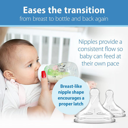• BREASTFEEDING BOTTLE. The breast-like nipple shape encourages a proper latch for a more natural bottle feeding experience and eases the transition from breast to bottle and back again.