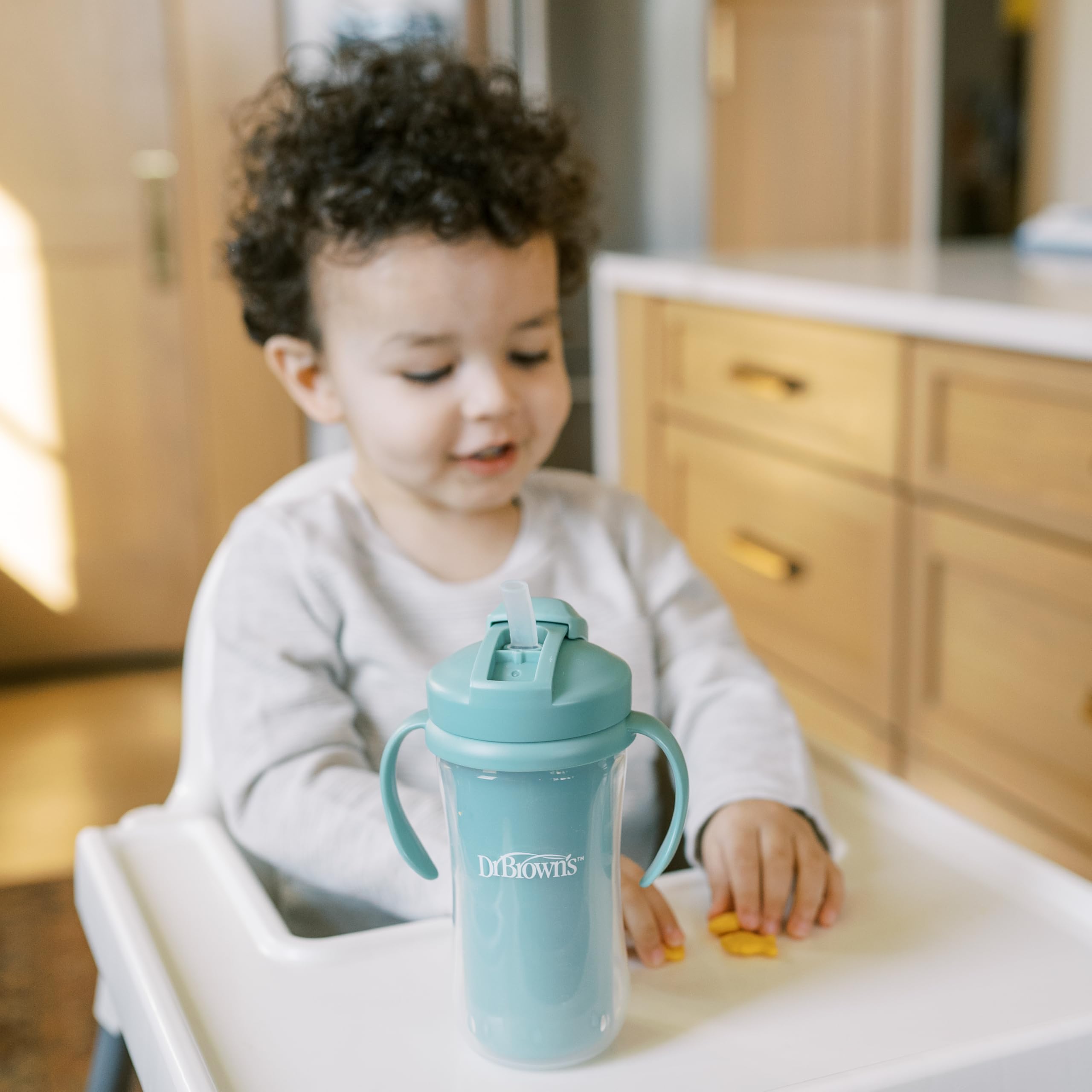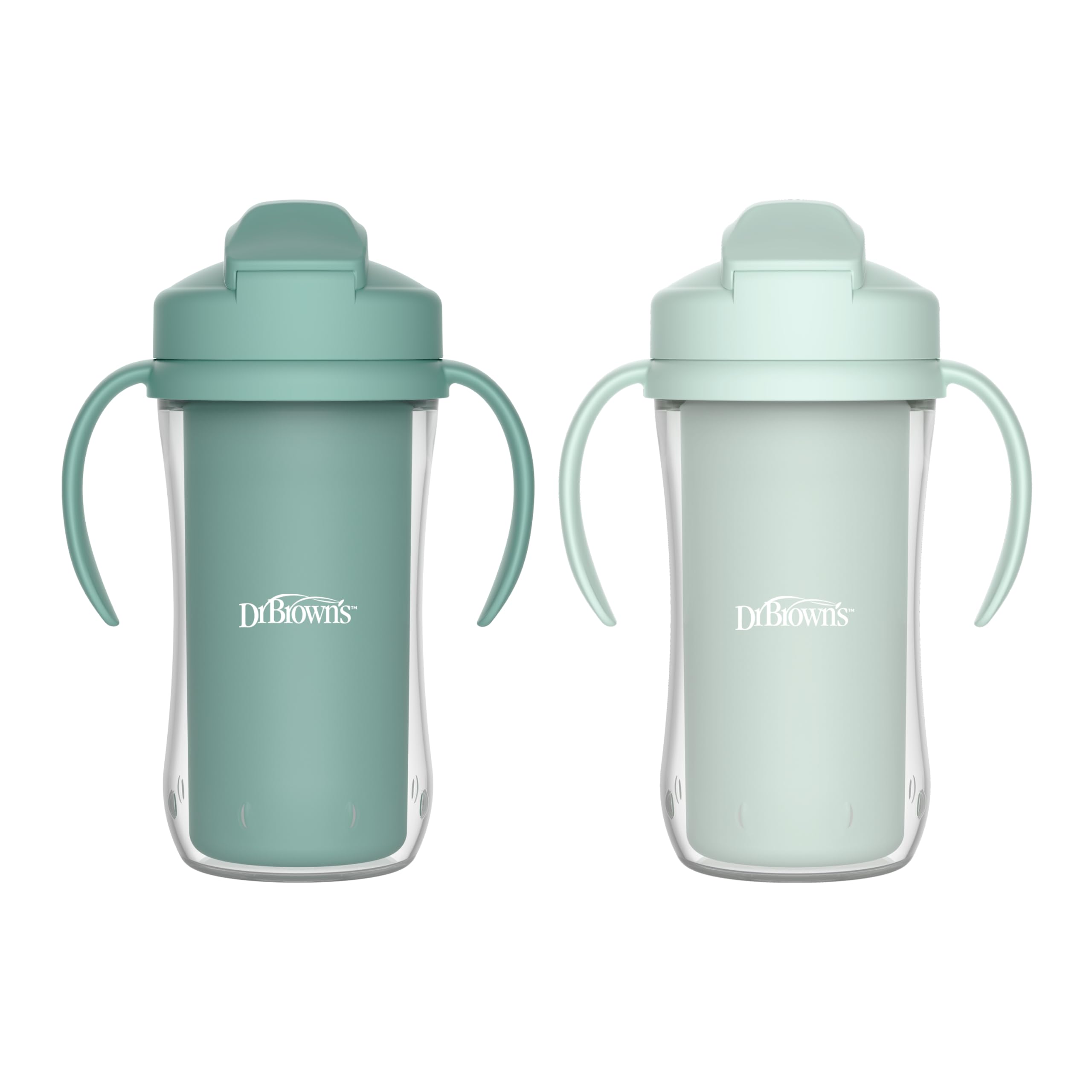 - Dr. Brown's Milestones Insulated Sippy Cup with Straw and Handles, Spill-Proof Tumbler with Lid, 2-Pack, Green, 10 oz/300 mL, BPA Free, 12m+
